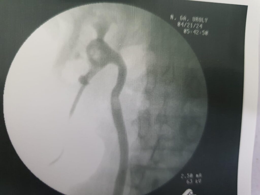 History : Patient presented with recurrent flank pain, urinary frequency, and occasional blood in urine.